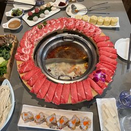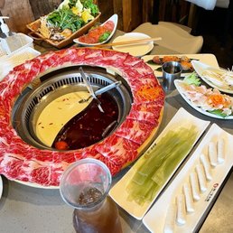 We came here on a late Saturday afternoon so it wasn't crowded. They sat us right away. There were low on staff so service was quite slow and they kept forgetting some of our orders but it wasn't a big deal and not their fault anyway. It's a really nice and big restaurant. Sittings were comfortable. It's kept very clean! There weren't a lot of meat options I would say but they have amazing broth flavors! We got the duck and fish maw soup base and they were absolutely delicious! So flavorful and unique! I would come back here just for the broth lol. They do have a wide variety of sides, fruit bars, make your own sauce bar, etc. Pretty pricey but for the ambience and quality of the food, I definitely recommend. Considering that I'm typically not a hotpot person too!